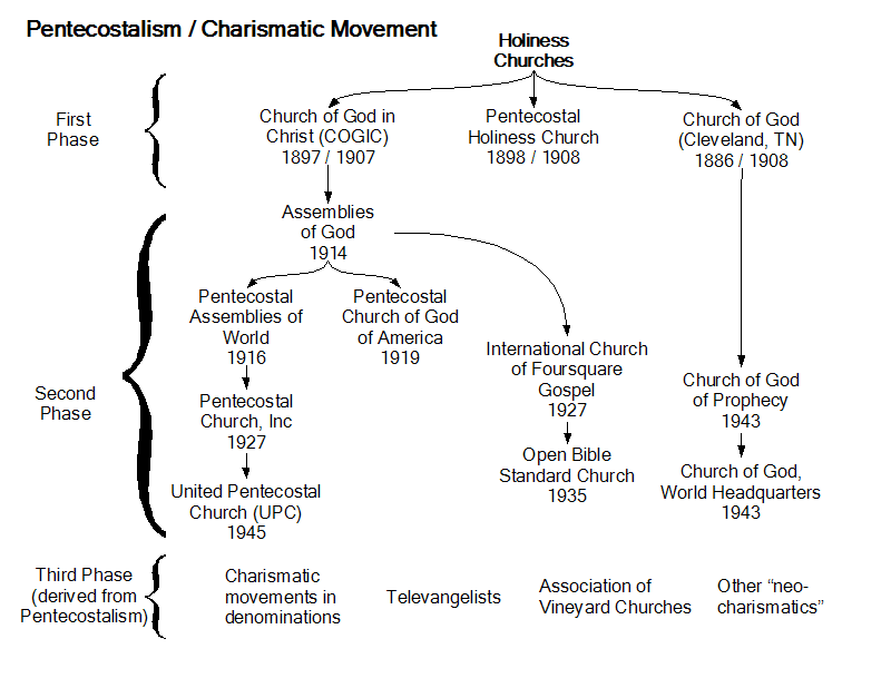 Eventualmente, se desarrollaron tres divisiones pentecostales principales y varios grupos disidentes similares:
